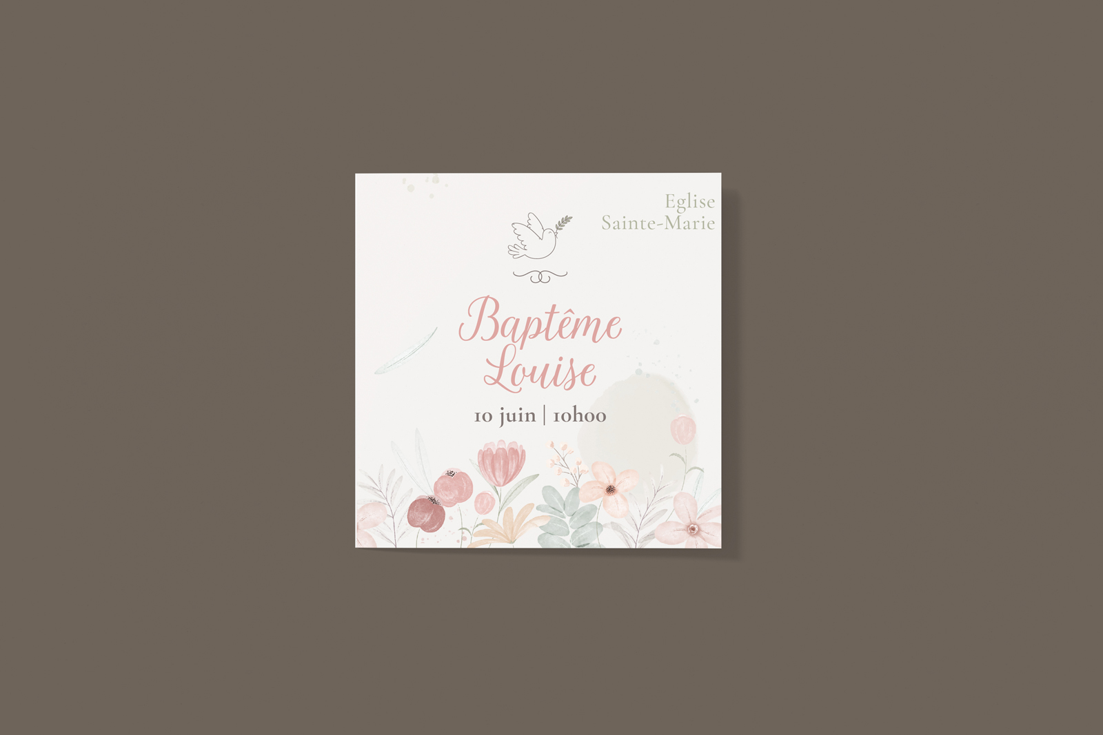 Cette bougie personnalisée s’accorde parfaitement avec la papeterie de la collection Floral pastel rose.
