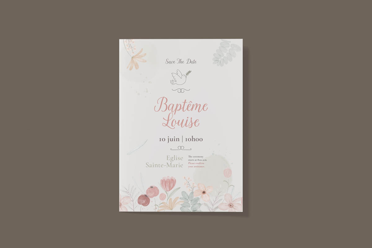 Un design délicat et poétique, parfait pour annoncer une cérémonie douce, lumineuse et raffinée.